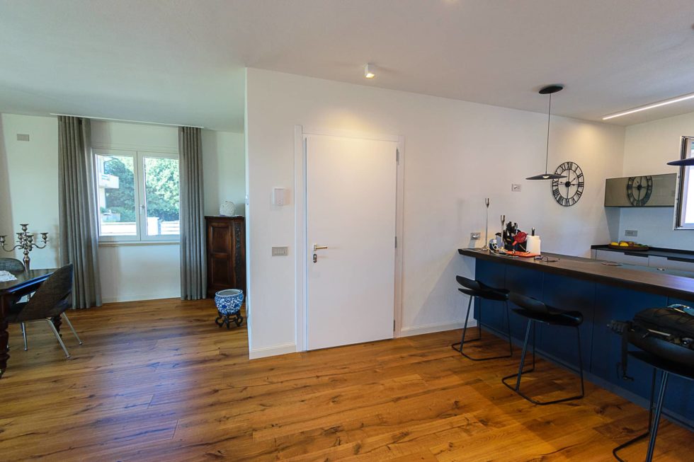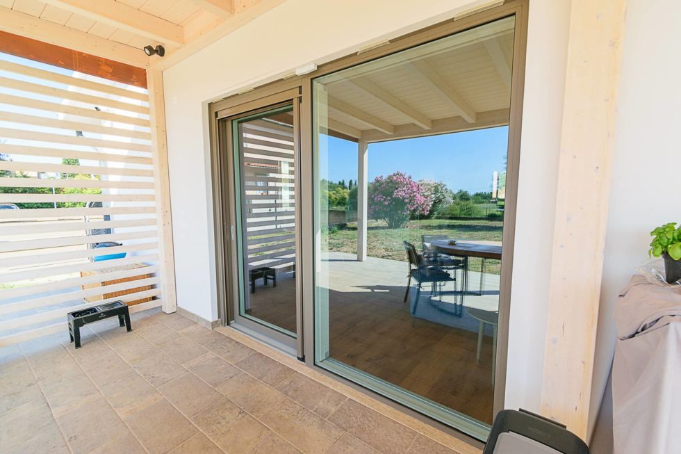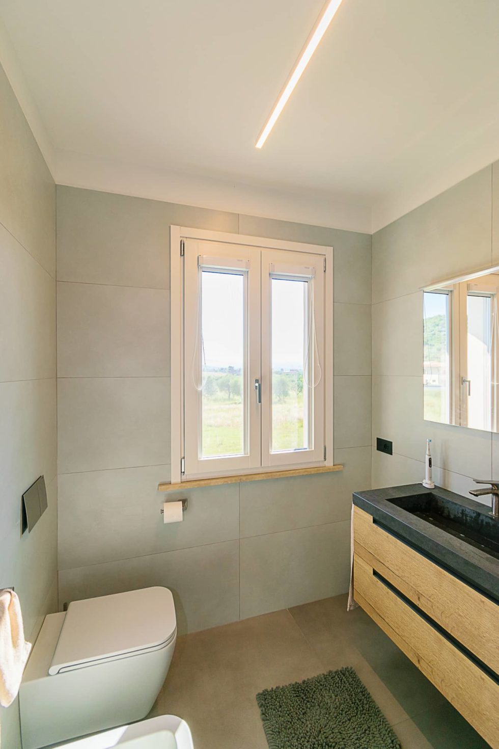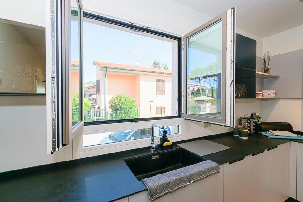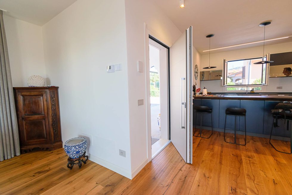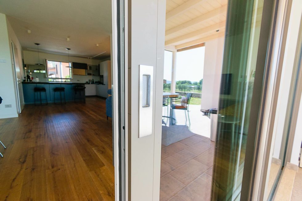 Abbiamo installato anche un alzante scorrevole in legno-alluminio Imago, ideale per chi desidera ampie aperture e una connessione fluida tra interno ed esterno. Questa soluzione permette di godere della vista panoramica e della luce naturale, senza rinunciare all’efficienza energetica e alla robustezza.