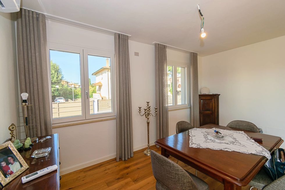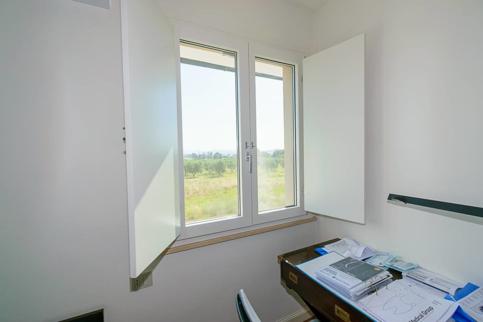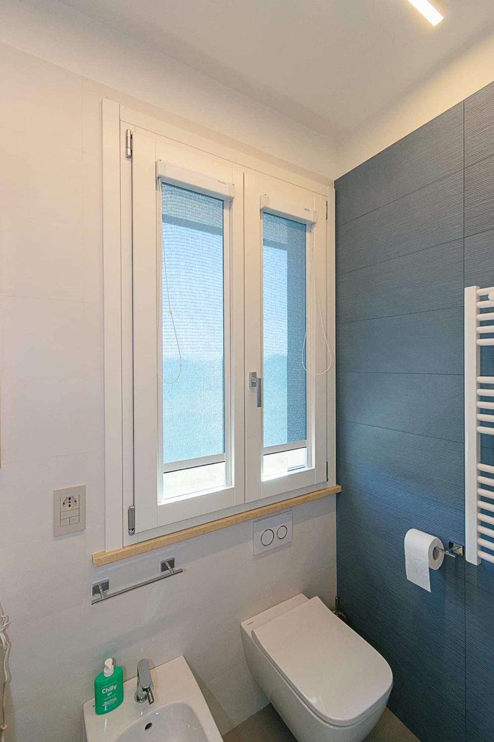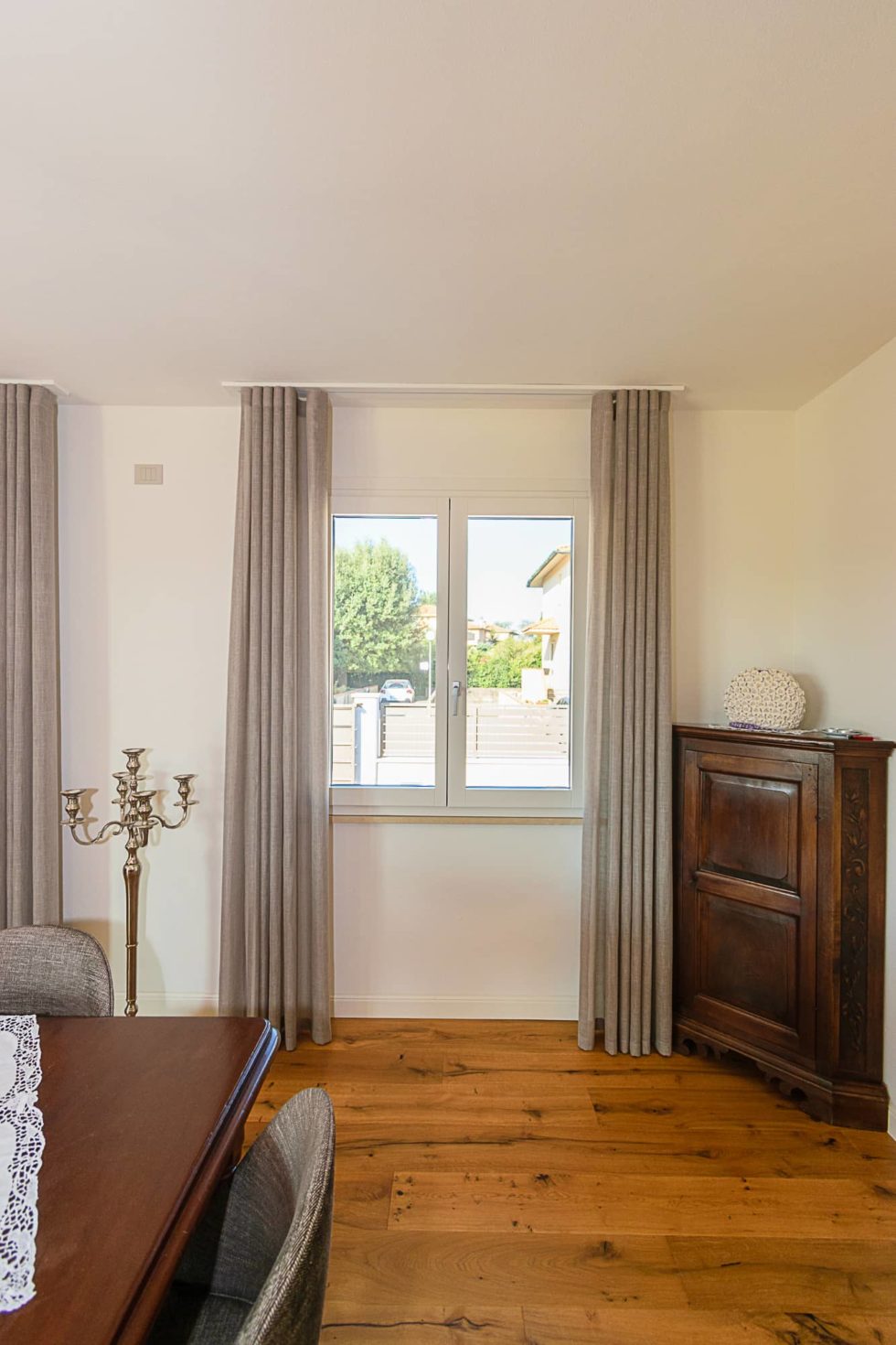 Abbiamo installato infissi in legno-alluminio con scurini interni, combinando eleganza e funzionalità. Questa scelta permette di godere della bellezza del legno all’interno e della resistenza dell’alluminio all’esterno, garantendo isolamento termico e acustico di alta qualità.