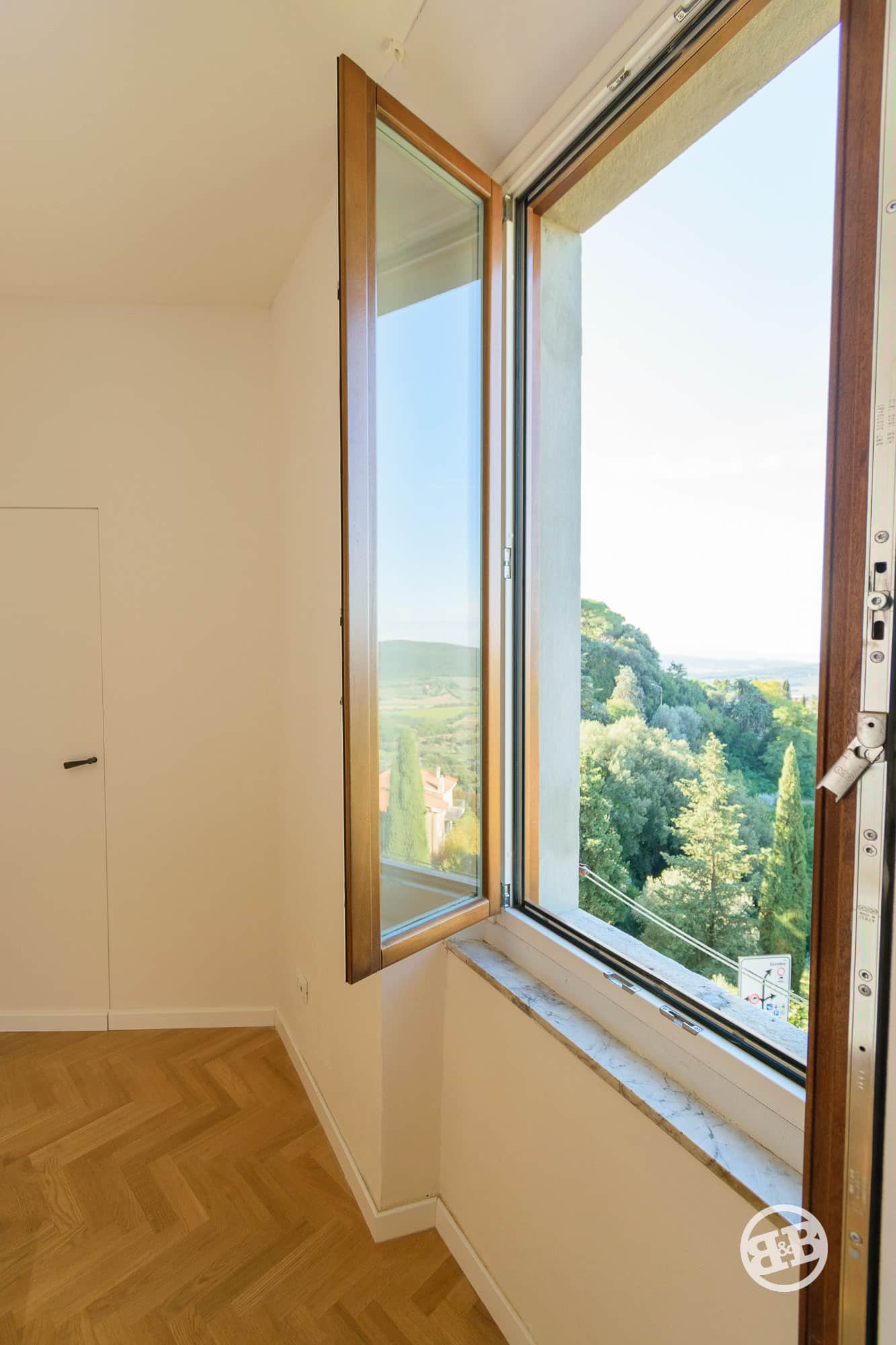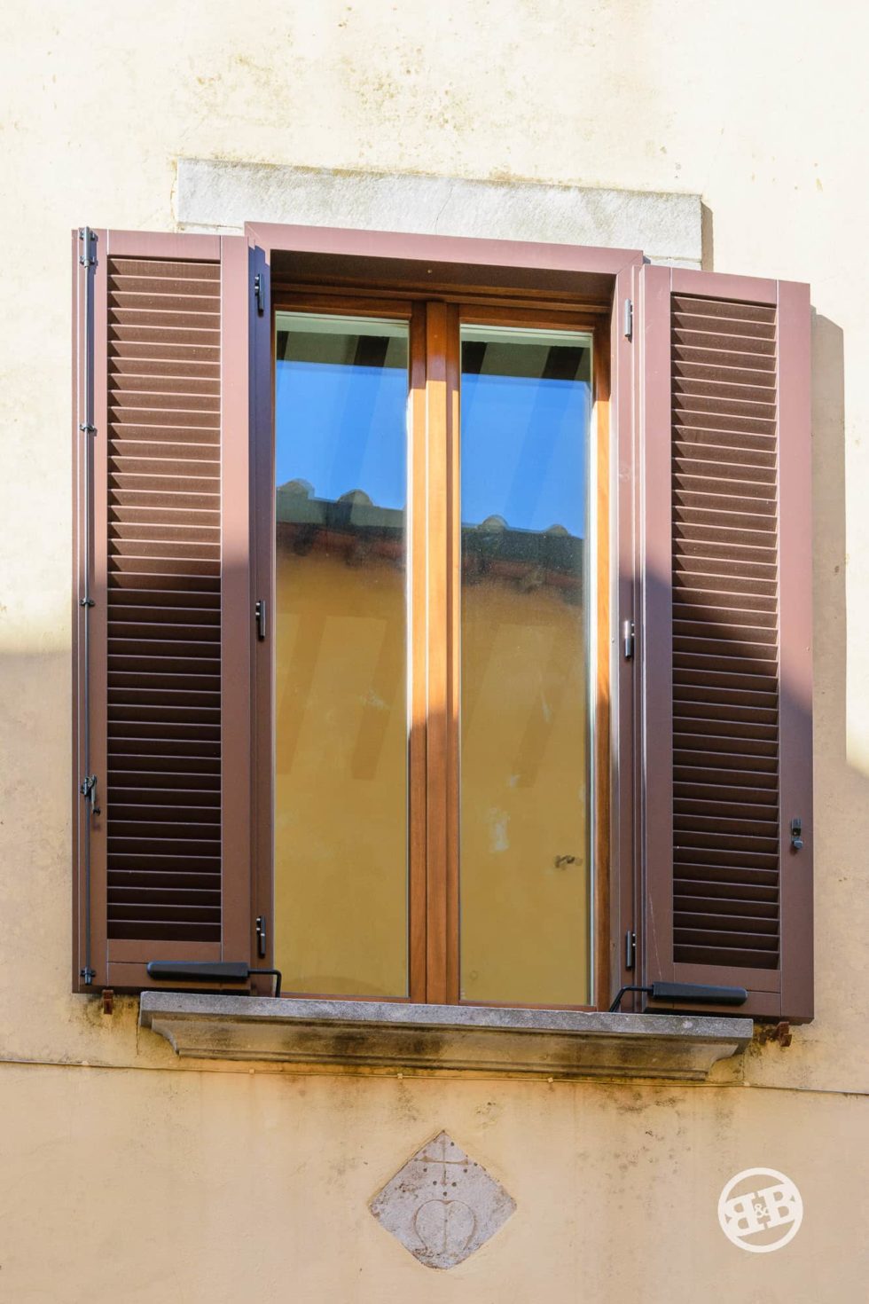 Per questa abitazione situata nel centro storico di Massa Marittima (GR) abbiamo realizzato e installato finestre e persiane in legno Mogano Okumè, un materiale pregiato che unisce eleganza, durata e rispetto delle caratteristiche architettoniche originarie.