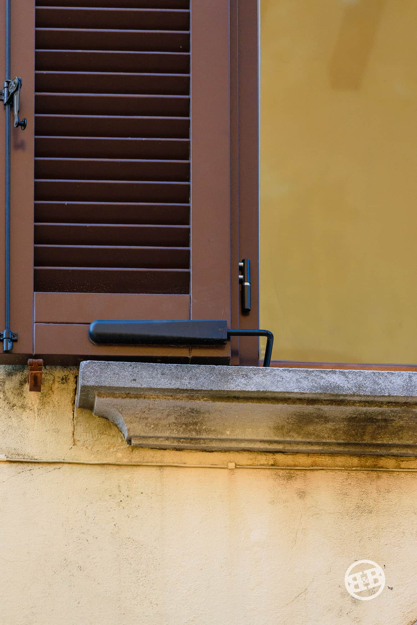 Le persiane in legno massello modello Vario 57, laccate RAL 8017, completano il progetto con un tocco autentico e coerente con le linee architettoniche dell’edificio.