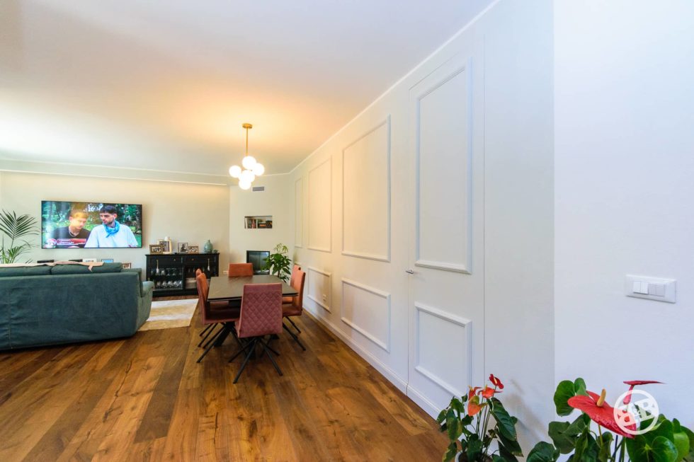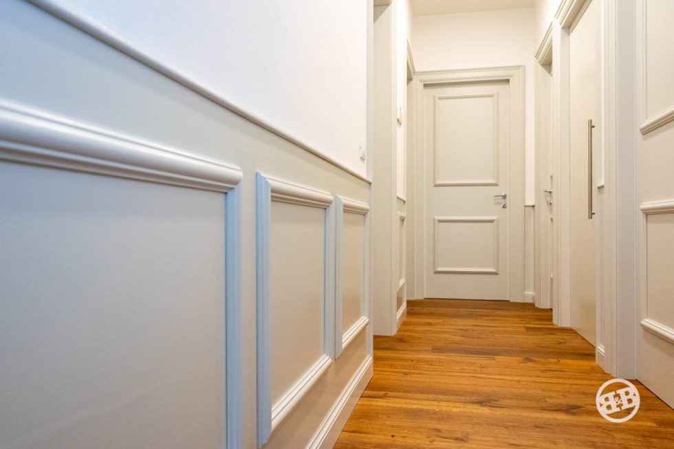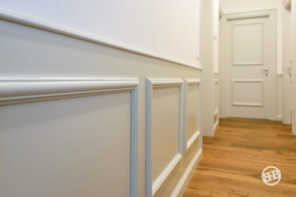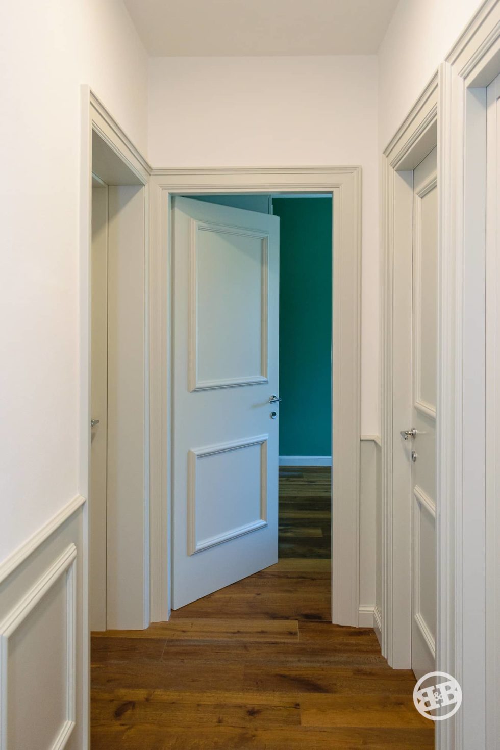 • Boiserie coordinate con le porte interne per garantire coerenza estetica e un ambiente raffinato e accogliente.