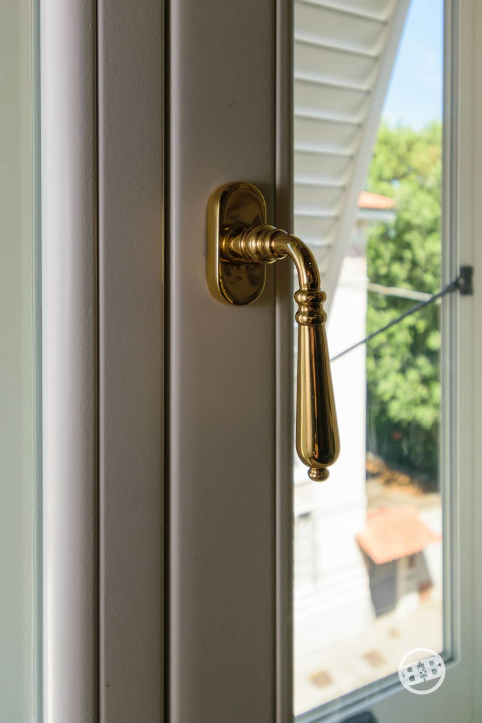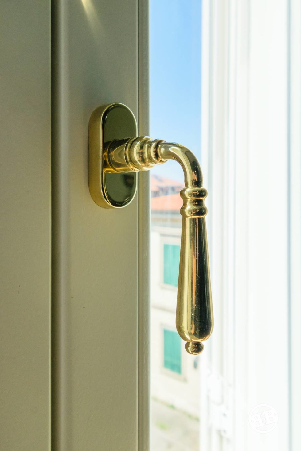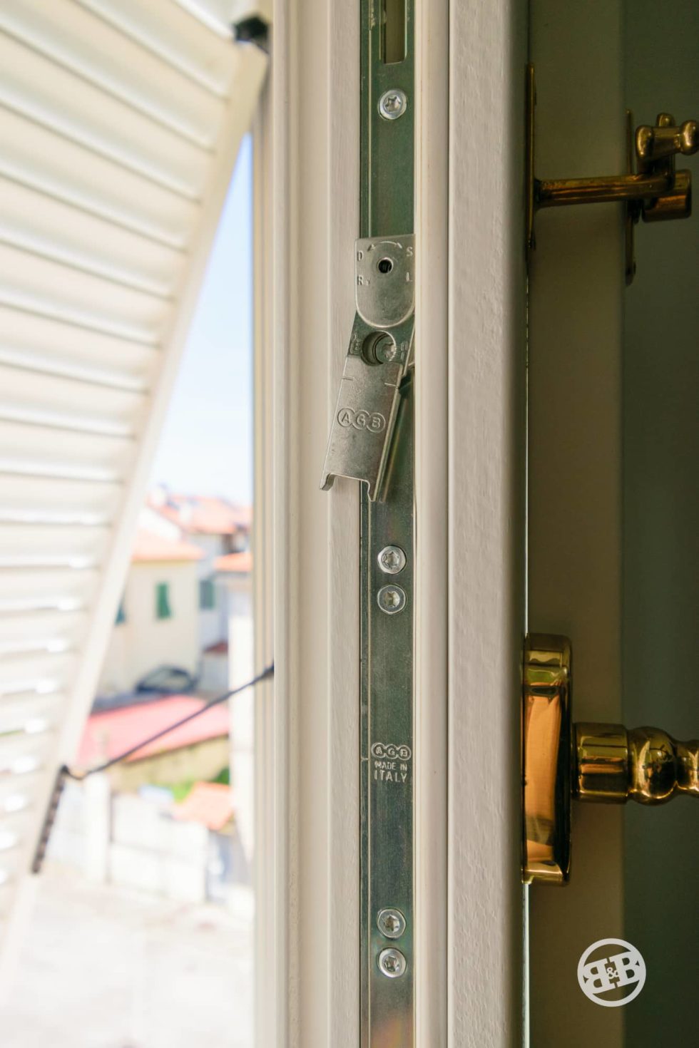 Le finestre e portefinestre installate sono realizzate in mogano okumè lamellare, laccate bianco RAL 9010 e dotate di vetrocamera 33.1 Infinity con gas Argon. La ferramenta AGB con apertura anta/ribalta e le guarnizioni in EPDM garantiscono ottime prestazioni di isolamento termico e acustico, con valori Uw fino a 1.27 W/m²K.