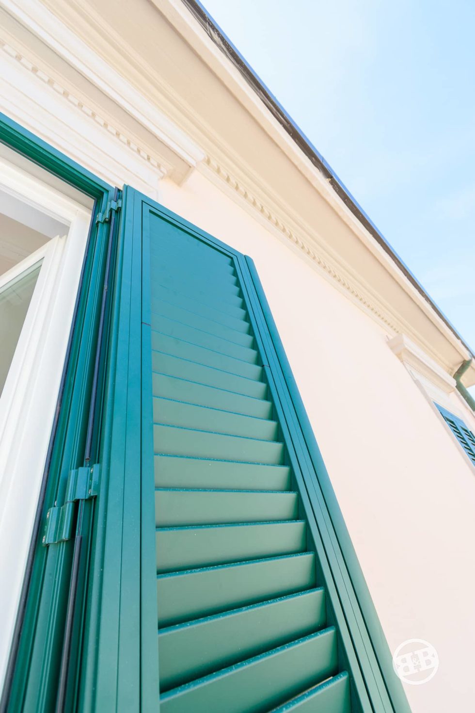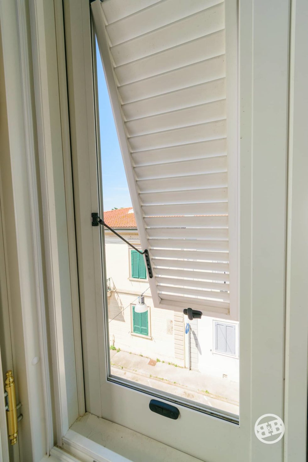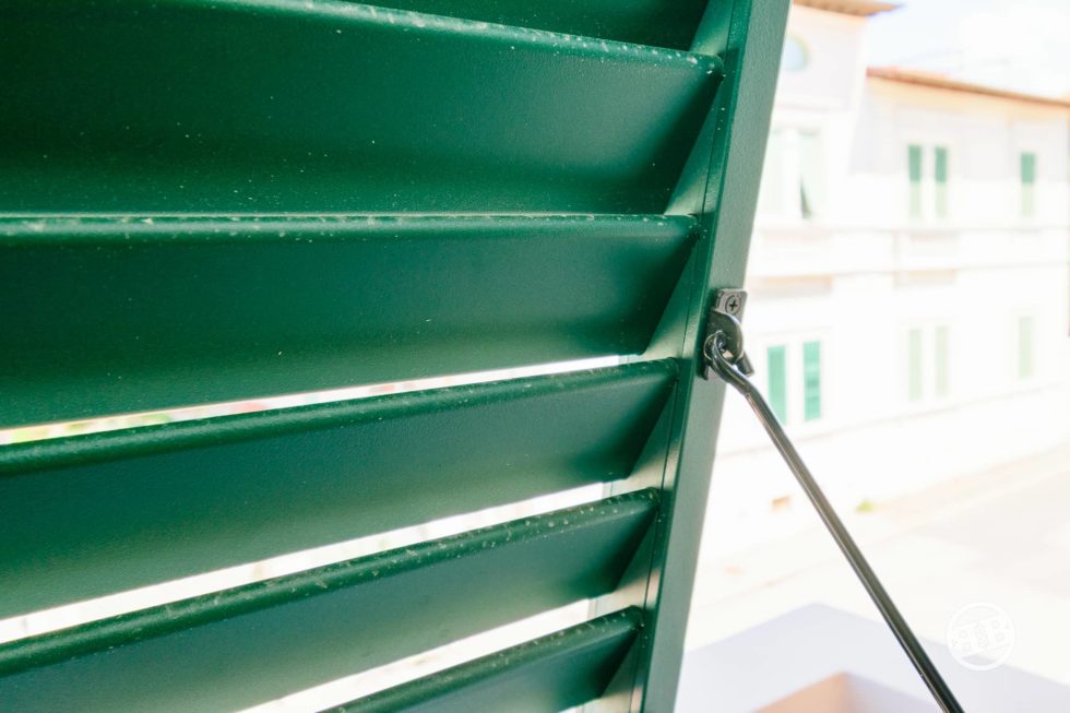 Le persiane in alluminio a stecca fissa, in finitura bianca o verde grinzata, sono complete di chiusura a cremonese e accessori in tinta, adattate ai vari ambienti dell’abitazione.